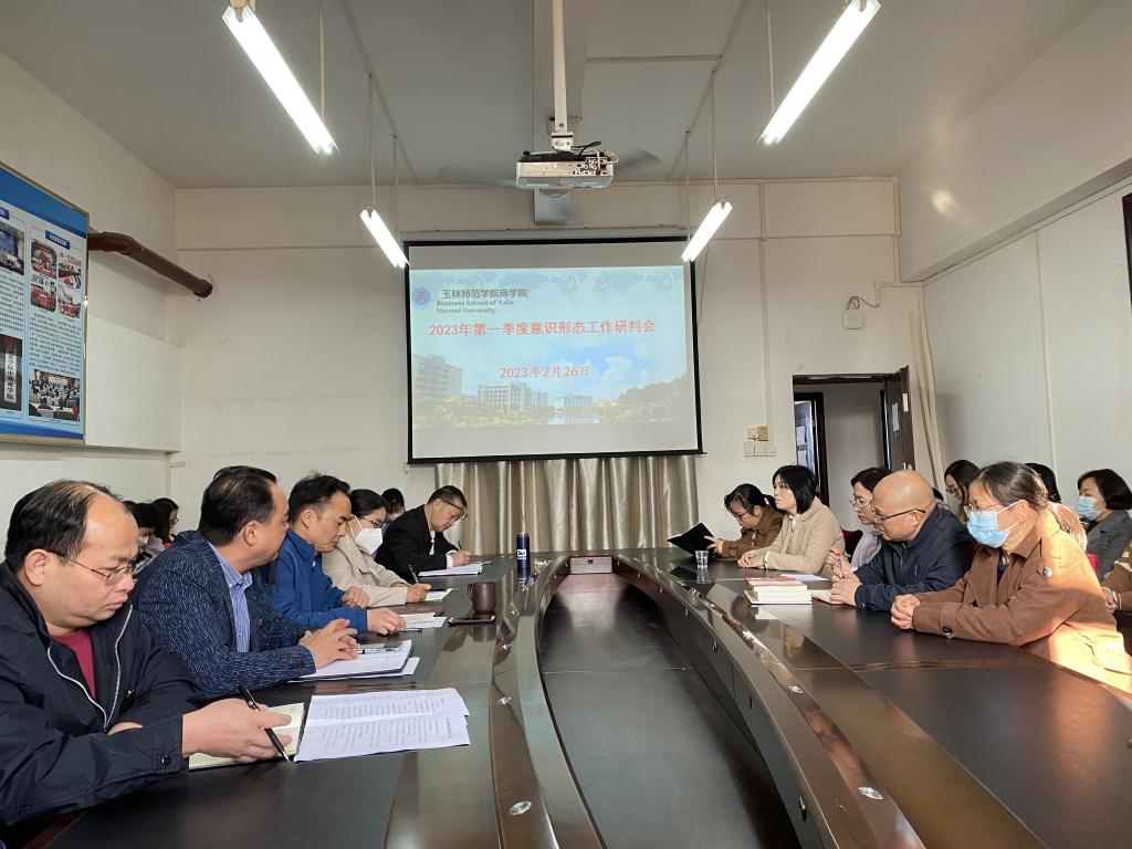 2月26日,太阳成集团tyc9728于公司东校区博学楼1-407会议室召开2023年第一季度意识形态工作研判会。本次会议由党委书记管金标主持,公司全体教职工参加此次会议。