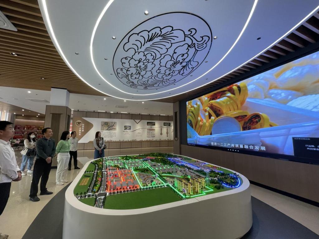 牛腩粉产业园基地工作人员向许进杰经理一行介绍牛腩粉基地建设及运营情况