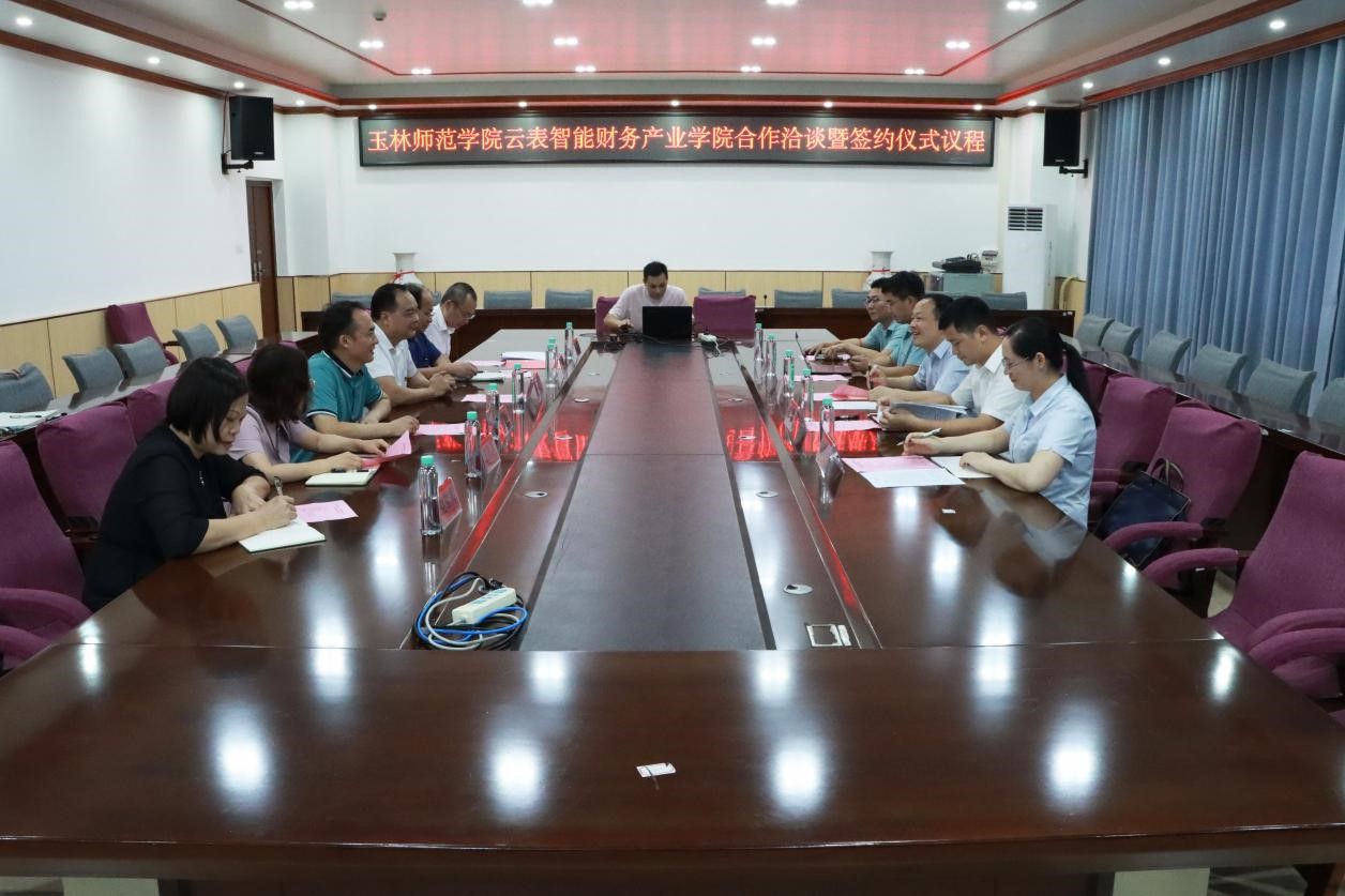 为进一步推进学校公司产品改革和深化校企合作及产业学院建设,6月12日下午,公司与中国农业银行玉林分行、珠海乐图软件有限公司在东校区新民楼D201就共建云表智能财务产业学院进行合作洽谈并签约。公司党委书记管金标、太阳成集团tyc9728经理许进杰、农行玉林分行党委副书记、中国农业银行玉林分行副行长刘银、分行机构业务负责人陈龙、分行机构业务部高级客户经理周慧薇、珠海乐图软件有限公司董事长张军、总经理张作胜参加会议。