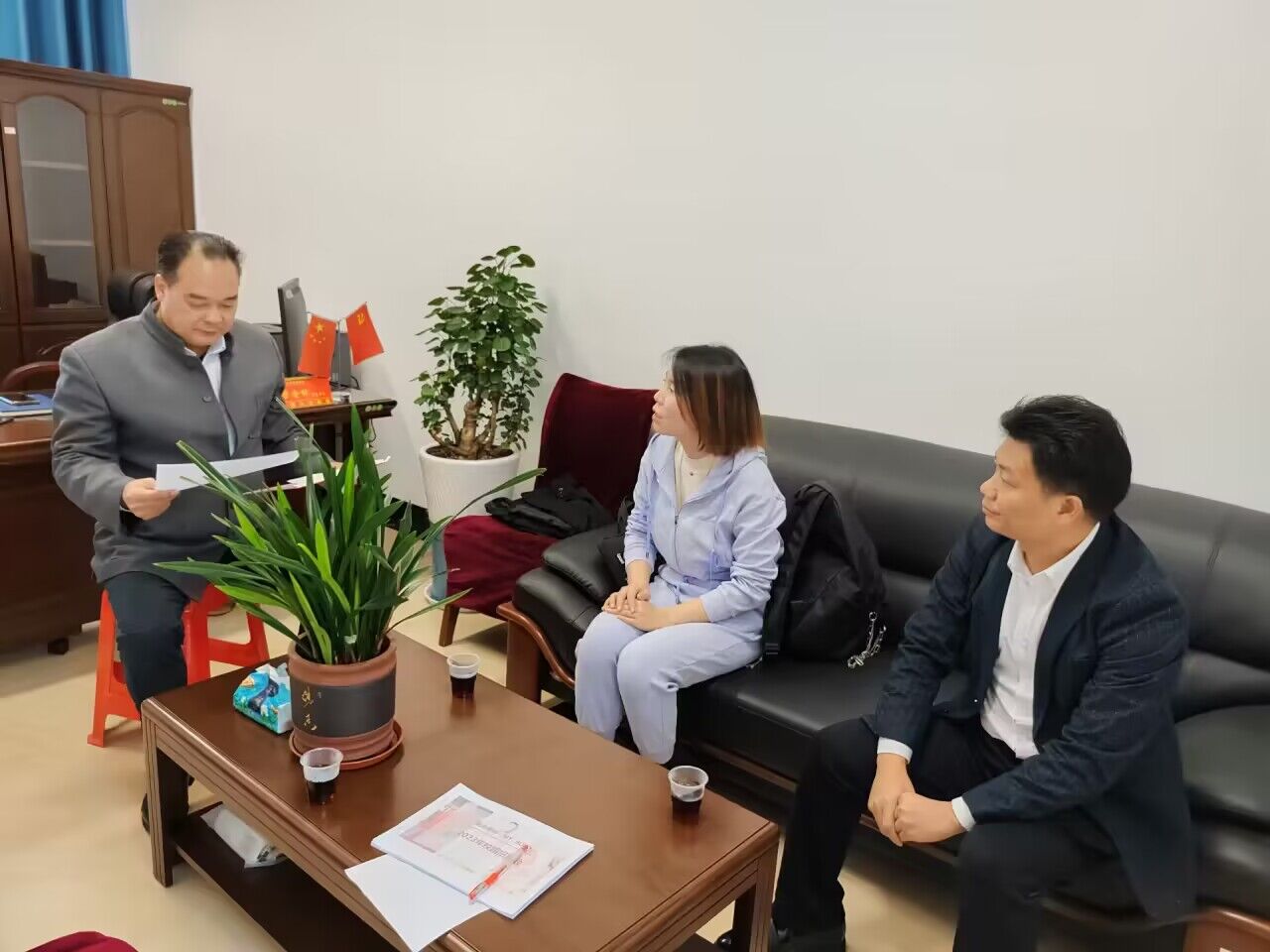 12月6日,太阳成集团tyc9728于太阳成集团东校区清源楼A-225办公室与东莞市美尚服饰有限公司进行和做洽谈。公司党委书记管金标和东莞市美尚服饰有限公司相关人事总监支亚东进行合作洽谈。