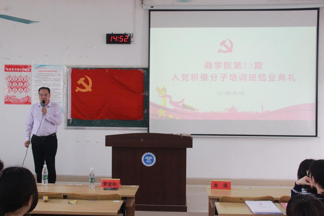 管金标首先代表学院分党校培训班教学与管理的各位老师表示衷心的感谢,并对全体学员提出三点希望:第一,增强政治觉悟和政治能力;第二,不断学习,以党的二十大精神指导自身的成长与实践;第三,端正自己的入党动机,做一个入党动机纯洁的人,坚定跟党走.