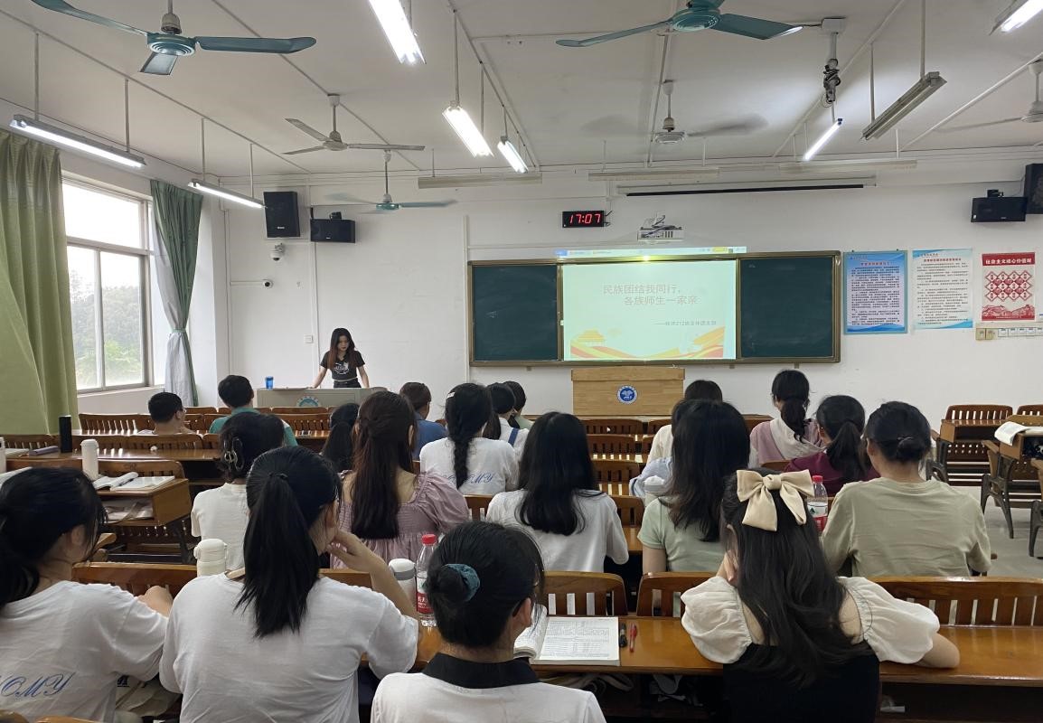 经济学2021级(2)班团支部全体成员于2023年4月12日在博学楼3201教室进行四月份团日活动主题一一“民族团结我同行,各族师生一家亲”,主持人为团支书苏月艳。