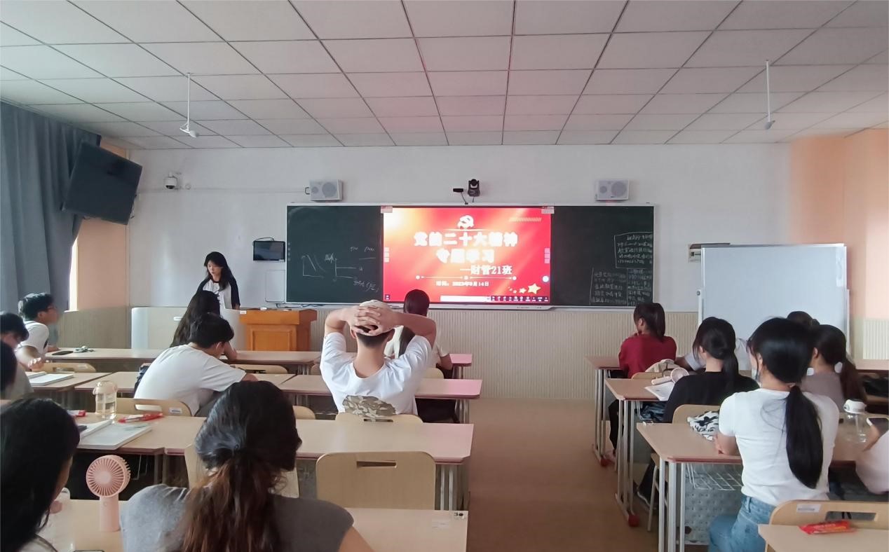 财管21班于2023年9月14日在明德302教室召开“党的二十大专题学习”主题班会,此次会议由团支书李纯同学主持,财管21班全体同学参加。