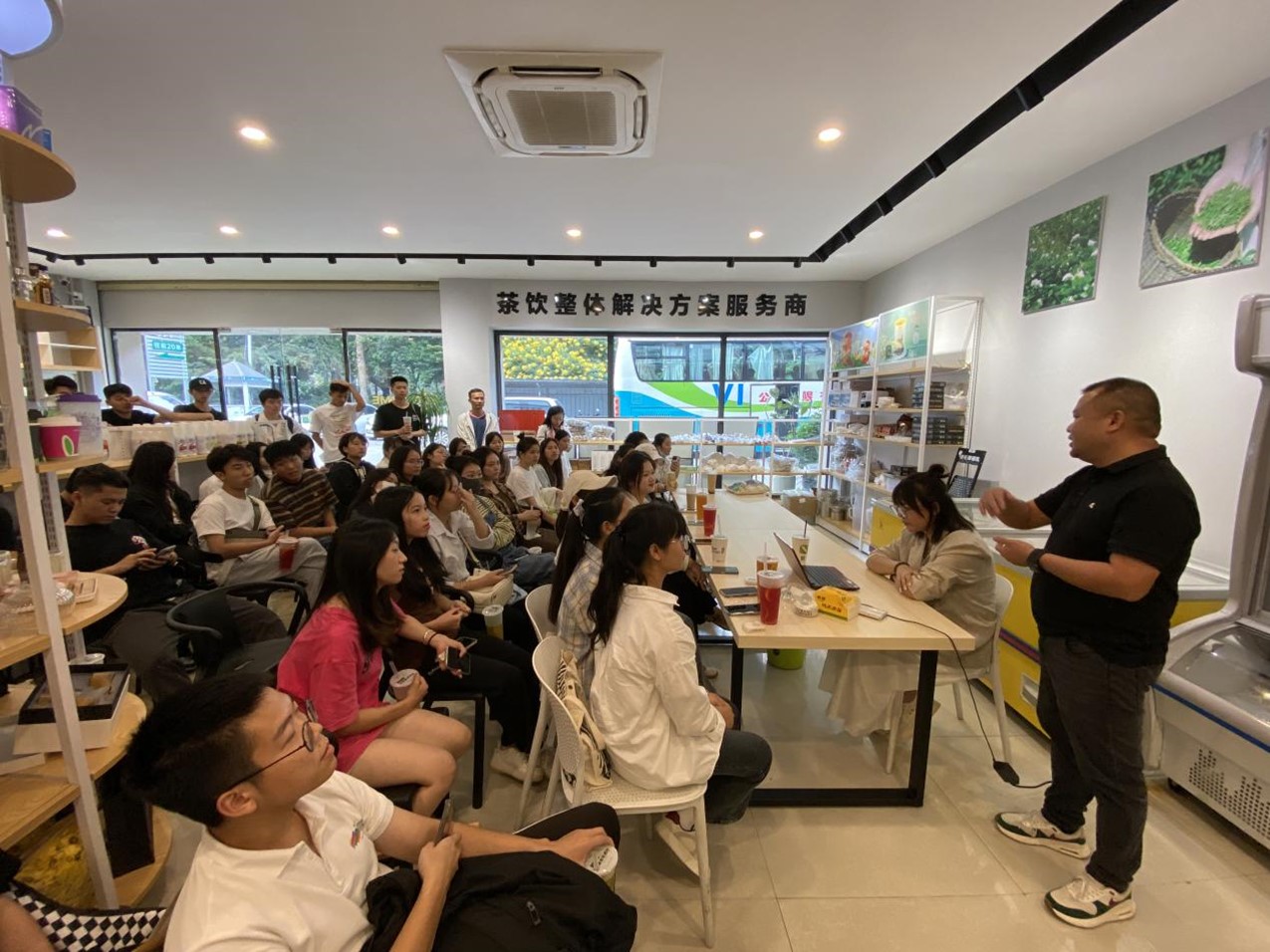 活动中,李总监带领同学们参观公司内部,介绍公司的来源,发展理念以及未来发展规划。多年来,企业始终保持初心,坚持与加盟商建立友好的互助、互惠、互利的关系。其次,带领同学们在会议大厅参观讨论。大厅里,她谈到,公司目前有两种奶茶品牌,西柠和涯茶。通过两种奶茶品牌介绍,让同学们零距离接触餐饮企业中,包含两种品牌运营模式、以及公司开店、选址、培训等经验。随后,蒙绍祥老师表示,同学们可以大胆的提出自身想法,积极参与讨论当中。该企业与专业已经合作以久,感谢贵公司给同学们提供宝贵的实践考察机会,感兴趣的同学多向企业学习,学习企业优秀管理模式。