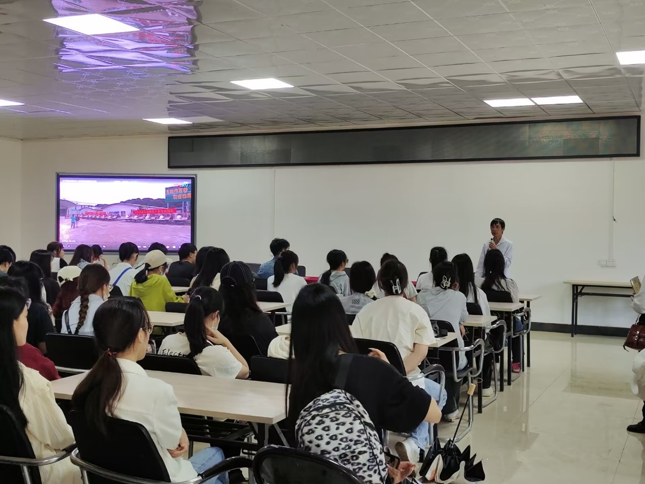 1日上午,同学们到达玉林市志威农业有限公司后,牟俊虹师姐对我们的到来学习表示热烈欢迎,珊罗镇黄主任向同学们简单介绍珊罗镇农业产业发展经营情况,并对我们“学农人”寄语:希望更多的年轻人关注农村,爱农村,积极投身到乡村振兴发展中来。随后志威有限公司的郑总向我们用视频的方式展示了水稻的机械化过程,并且进走进工厂进行学习,同学们收获颇多。