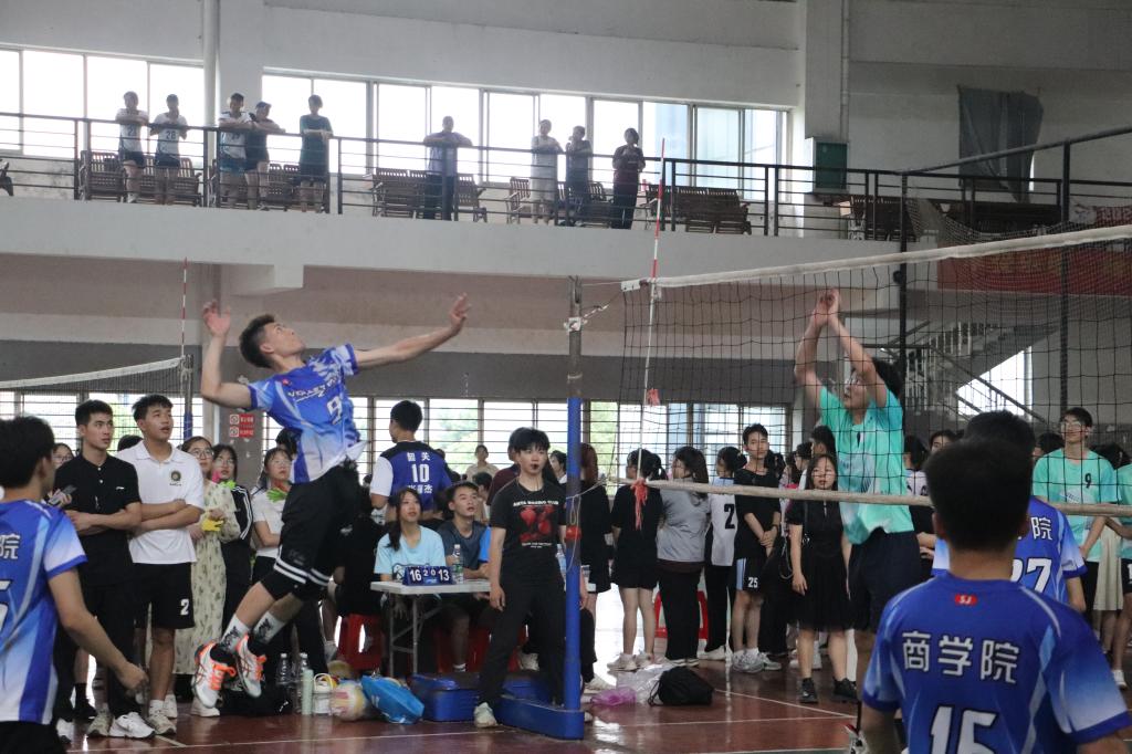 为丰富广大同学的文体娱乐生活,加强校内各院系的交流,5月5日,在球类运动会——男子排球四强赛事上,公司与数统学院进行比赛。