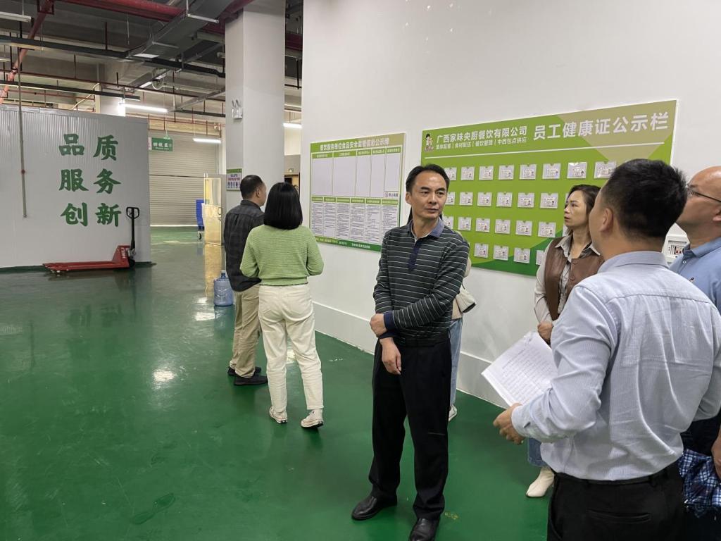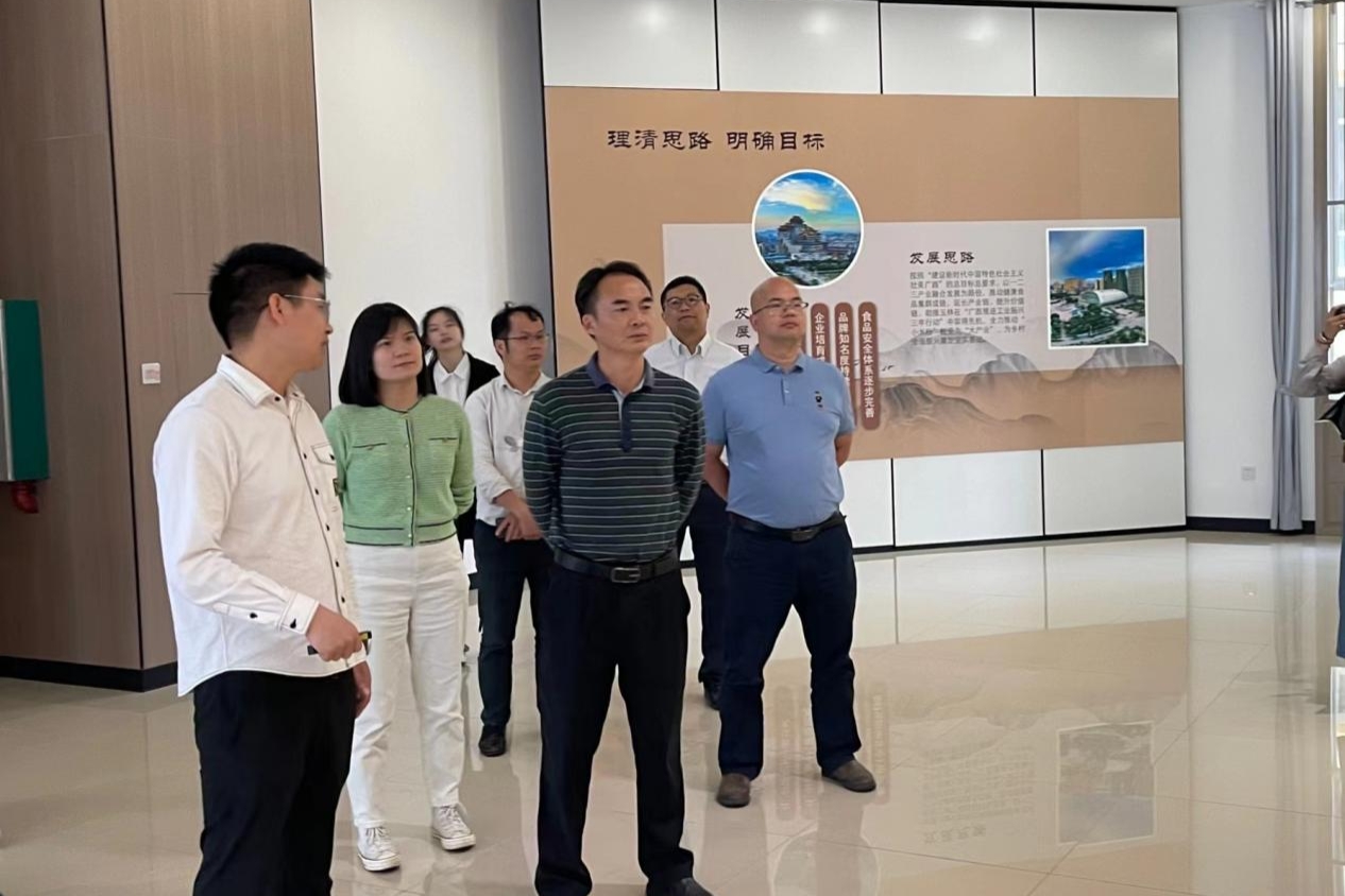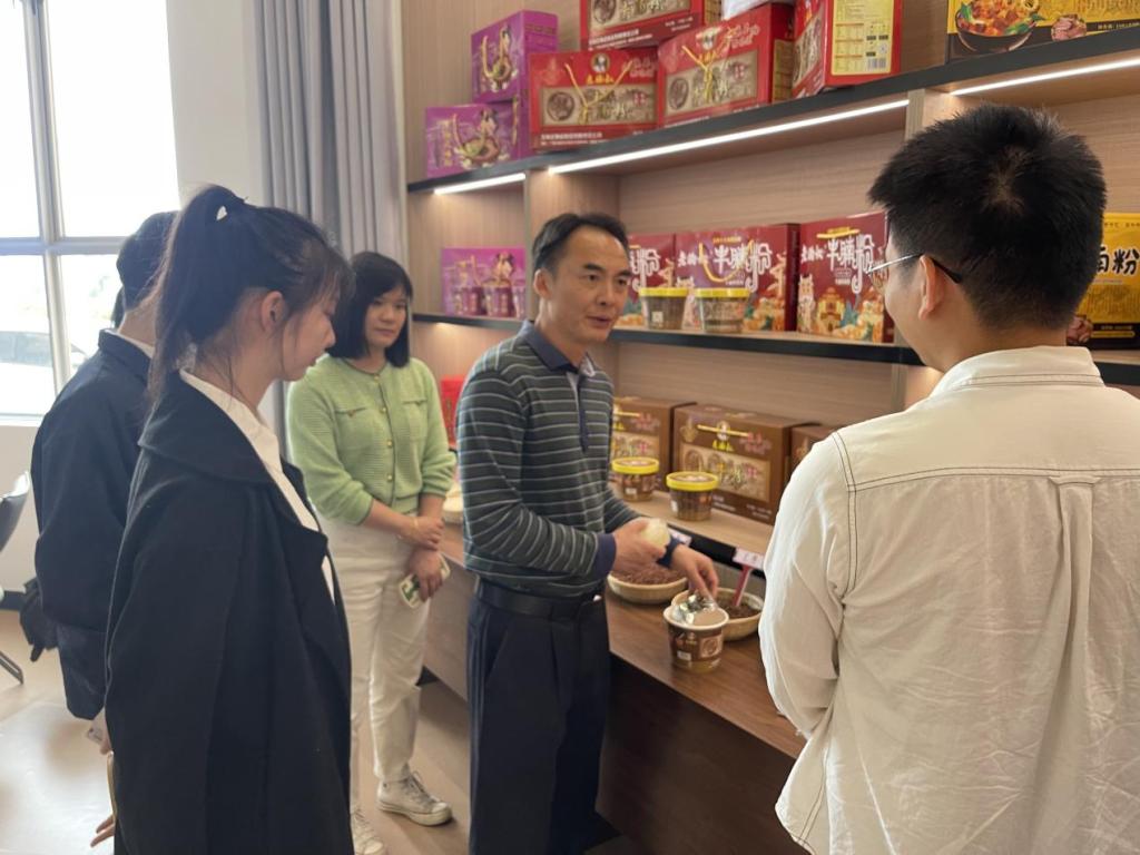 牛腩粉产业园基地工作人员向许进杰经理一行介绍牛腩粉基地建设及运营情况