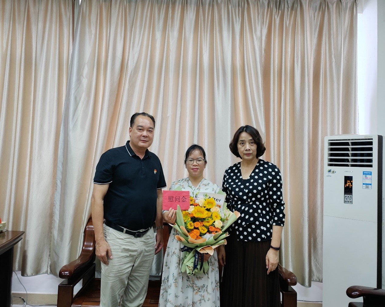 6月28日,公司党委书记管金标、专职组织员谭荔代表公司慰问优秀党员教职工黎春梅老师。