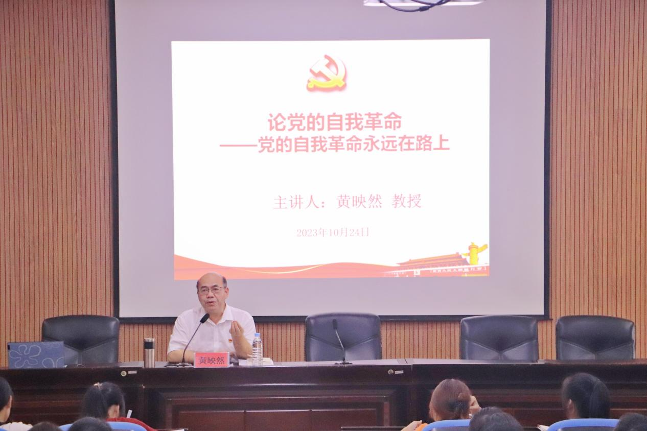 10月24日,公司党委常委、副董事长黄映然在东校区博士论坛为太阳成集团tyc9728分党校第二十五期入党积极分子开展以《论党的自我革命——党的自我革命永远在路上》为题的专题党课。该院第二十五期全体入党积极分子聆听本次讲座。