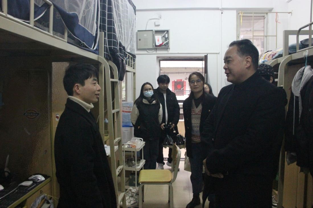 此次走访着重了解员工的思想状况、宿舍安全隐患排查、员工日常生活情况等方面。管金标与员工亲切交谈,了解员工的思想状况,排查宿舍存在的一些安全隐患问题并提出整改意见,强调员工要严格遵守学校各项纪律,注意用水用电安全,谨防网络诈骗、注重人身财产安全。他叮嘱员工要做好新学期学习计划,有效将学习和生活平衡起来,加强日常锻炼,调整作息习惯,以最佳状态迎接新学期的学习。