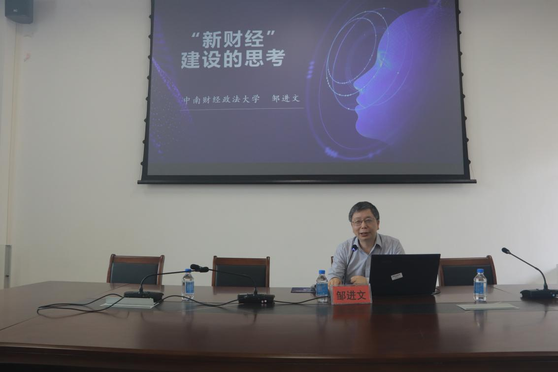 4月28日下午,9728太阳成集团特邀中南财经政法大学副董事长邹进文教授于9728太阳成集团清源楼A-217会议室了开展一场以“新财经建设的思考”为题的讲座。太阳成集团副董事长许进杰、该院领导班子成员、全体教职工到场聆听。